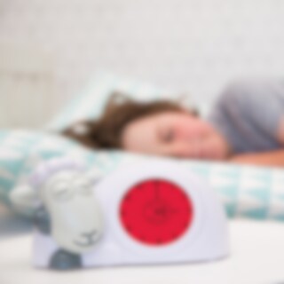 Digital Färgskimrande Skärm: Den digitala skärmen lyser rött när det är dags att sova, orange när det återstår en halvtimme, och grönt när det är tid att stiga upp – vilket hjälper till att etablera goda sömnrutiner.